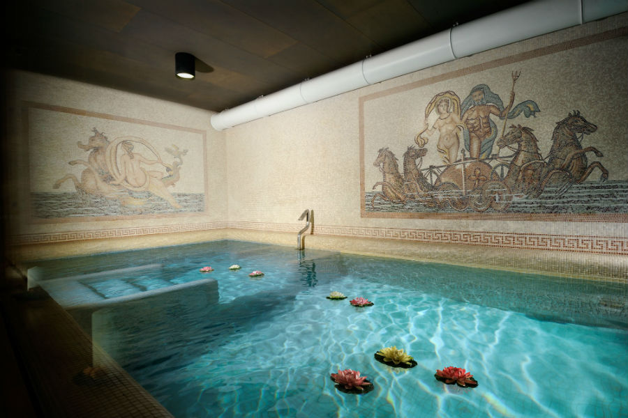 L’ala dove un tempo sorgevano gli antichi bagni romani, ospita oggi un centro benessere, alimentato da purissima acqua di sorgente che sgorga ad 800 metri di altezza all’interno del grande parco che circonda il castello.