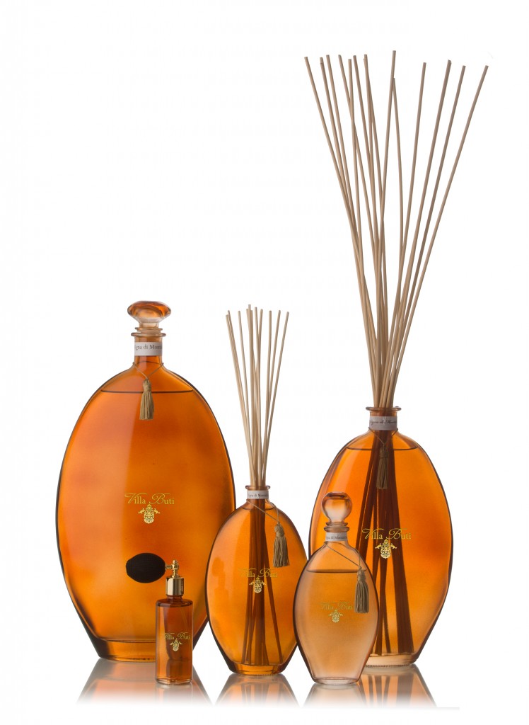 La maestosa residenza, luogo di incontro di varie personalità artistiche, è stata la Principale fonte di ispirazione delle creazioni Villa Buti. Da questo luogo così suggestivo è nata una collezione di profumi a tema, racchiusi in bottiglie di vetro soffiato rigorosamente lavorate a mano.