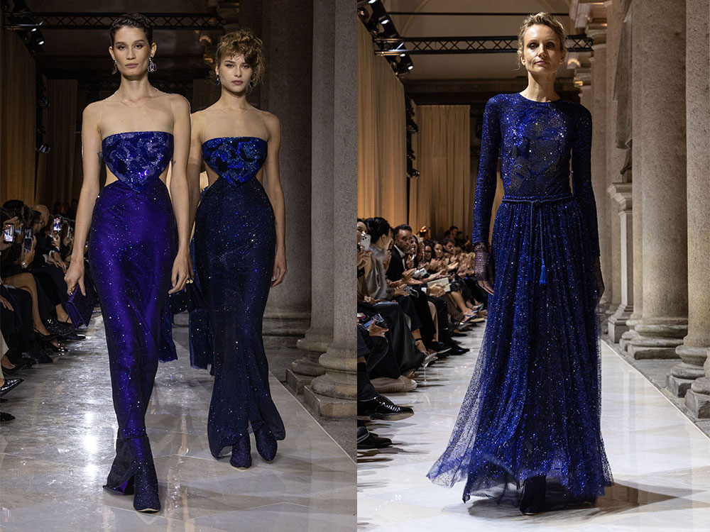 Il momento che resterà scolpito nella memoria collettiva è stato l’addio di Giorgio Armani. Nella cornice della Pinacoteca di Brera, è stata presentata la sua ultima collezione “Pantelleria, Milano”, trasformando la passerella in un vero e proprio atto poetico. Abiti fluidi, tessuti leggeri e linee allungate hanno evocato la purezza come armonia tra persona e abito. I colori, dai neutri organici ai blu profondi, hanno raccontato storie di terra e mare, mentre la leggerezza delle silhouette si è trasformata in memoria ed emozione. Un ultimo atto personale che ha celebrato la sua idea eterna di donna: sobria, elegante e capace di sedurre con discrezione. Un testamento creativo che apre alla consapevolezza di un’eredità eterna.