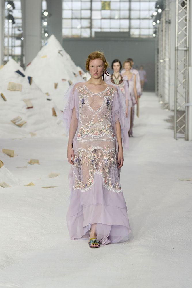 Luisa Beccaria ha offerto invece il contrappunto lirico: chiffon, organze e pizzi hanno dato vita a una collezione sospesa, eterea, che trasformava la femminilità in un sogno a occhi aperti, dove i fiori e i colori pastello diventavano linguaggio universale di grazia. Antonio Marras ha confermato la sua capacità di trasformare la passerella in un palcoscenico narrativo. La sua collezione è stata un mosaico di ricordi e suggestioni, dove il patchwork diventava diario visivo, i ricami raccontavano storie e gli abiti apparivano come quadri da indossare. Marras ha ribadito la sua visione teatrale, poetica e profondamente identitaria, capace di coniugare tradizione e sperimentazione.