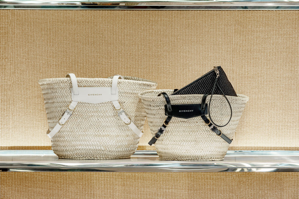 Onorando l’eredità beachwear del couturier, Givenchy Plage cattura lo stile della Riviera in silhouette audaci e sensuali. Le versioni stagionali degli accessori iconici, come la borsa Voyou, ora immaginata come un cestino in rafia con dettagli in pelle a contrasto, la shopper G Tote in rafia e l’iconica zeppa Marshmallow, completano i look.