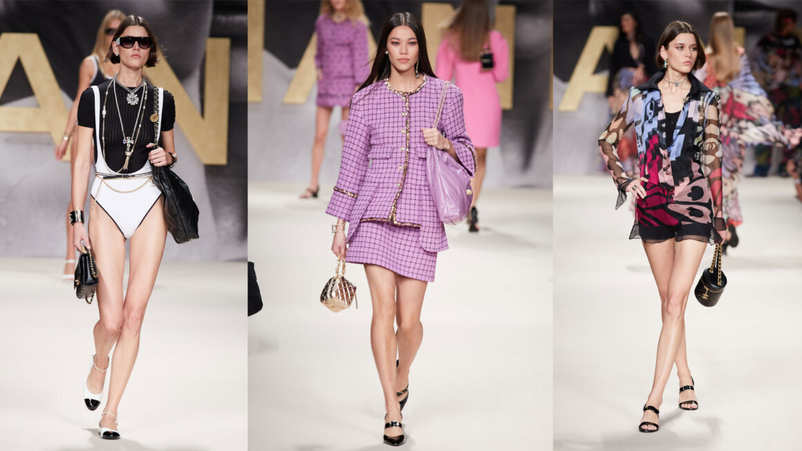 Virginie Viard riporta in auge la passerella circondata da fotografi, perché la fotografia per la stilista è la moda. Un ritorno al passato, per rivivere le emozioni che hanno accompagnato quel periodo. Costumi da bagno in oro o bianchi con passamanerie nere hanno invaso la passerella, facendo impazzire i fotografi. Gli abiti corti in tweed rosa o malva, gonne a rete e giacche impreziosite da uncinetto multicolore e completi in denim hanno sfilato una dopo l’altro. Grandi stampe come ali di farfalla colorate per giocare con un tocco di romanticismo. Tacchi svasati e fibbie delle Mary-Jane per un richiamo inaspettato.