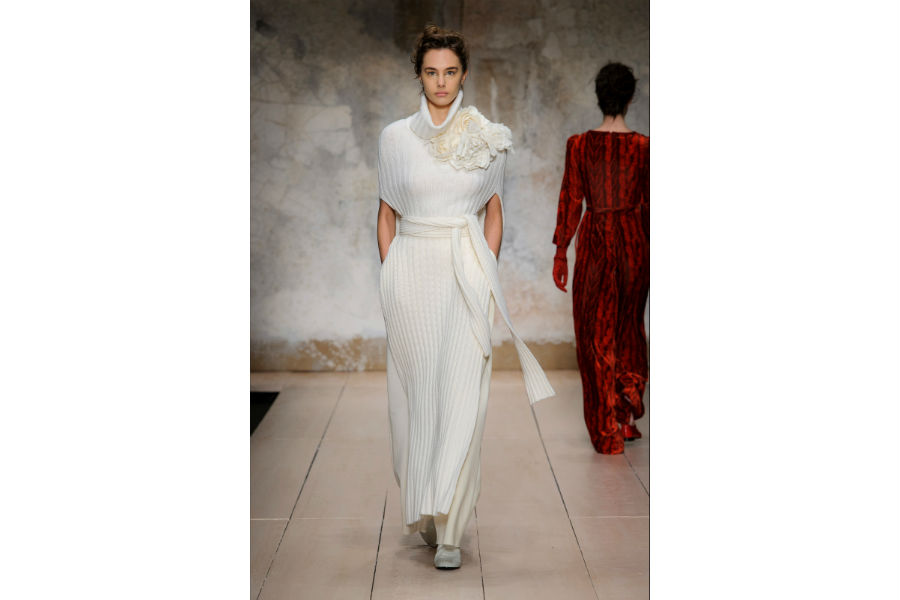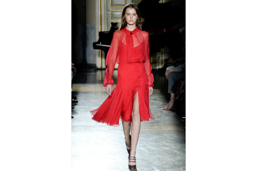 Fluidi e misteriosi gli abiti rosso vivo che ci trasportano in un viaggio tra sogno e realtà frutto della lavorazione artigianale che contraddistingue il brand Alberta Ferretti e le tecniche più innovative. E anche la collezione di Anna Molinari per festeggiare i quarant’anni del marchio Blumarine ci porta all’interno di un arcobaleno colorato, per riscoprire l’heritage del brand, i modelli storici, pensati per giovani fanciulle dall’animo romantico.