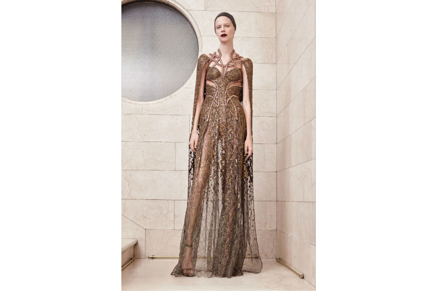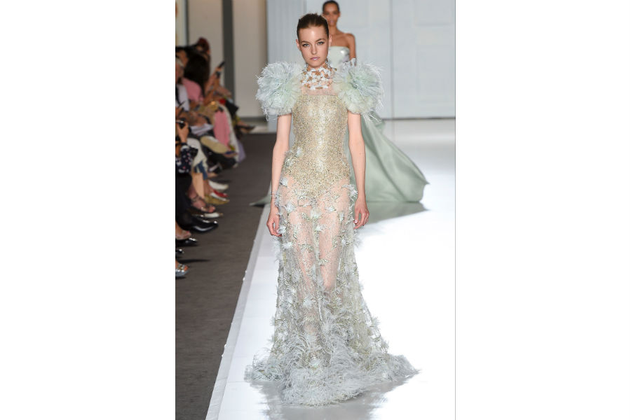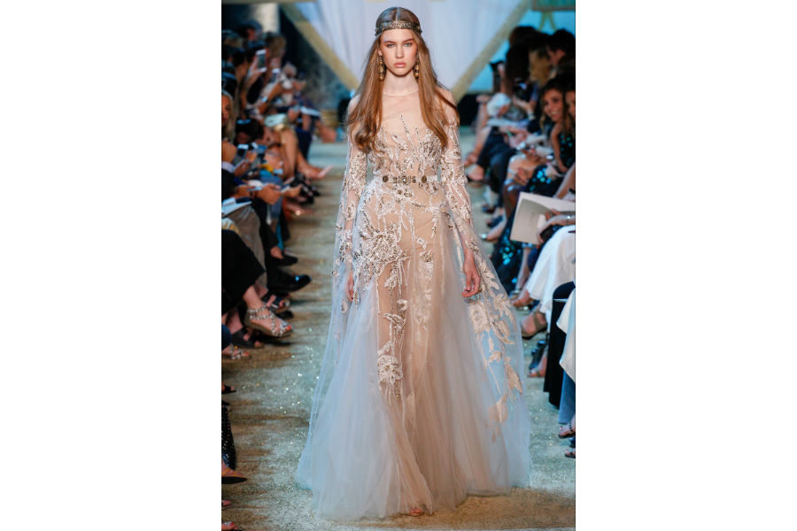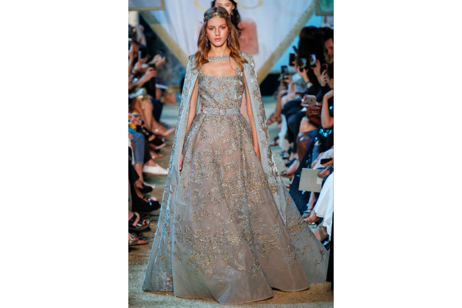 Gli abiti Haute Couture di Elie Saab sembrano disegnati e pensati per principesse di favole contemporanee. Forti e temerarie guerriere, che indossano armature preziose. I lunghi abiti in velluto, ma anche di organza e chiffon, sono tempestati da cristalli e fili d’oro per brillare nelle notti più buie ed essere stelle luminose.