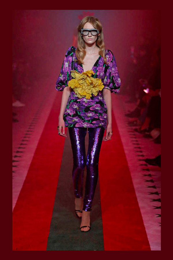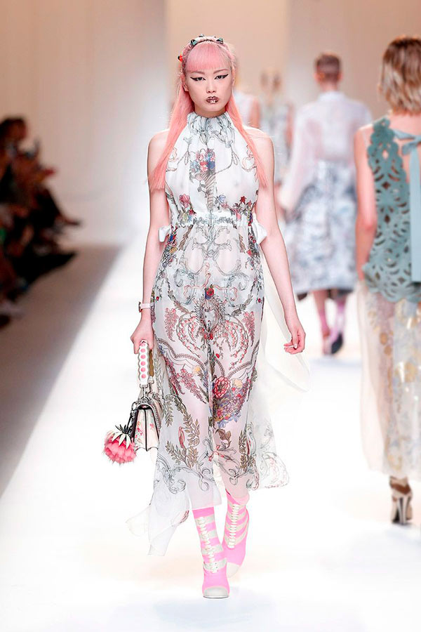 Gli abbiamo dedicato un intero articolo questo inverno (clicca qui per rileggere “Ruches je t’aime”) e la notizia è che la tecnica del plissé brevettata da Mariano Fortuny nei primo anni del Novecento imperversa nuovamente. Soprattutto su abiti, spalle e gonne lunghe o midi. I tessuti plissettati leggeri e leziosi fanno vaneggiare tutti gli stilisti. Emblema di alta sartorialità. La passione per il tessuto pieghettato, vaporoso e romantico, è incarnato perfettamente da Chanel e Gucci.