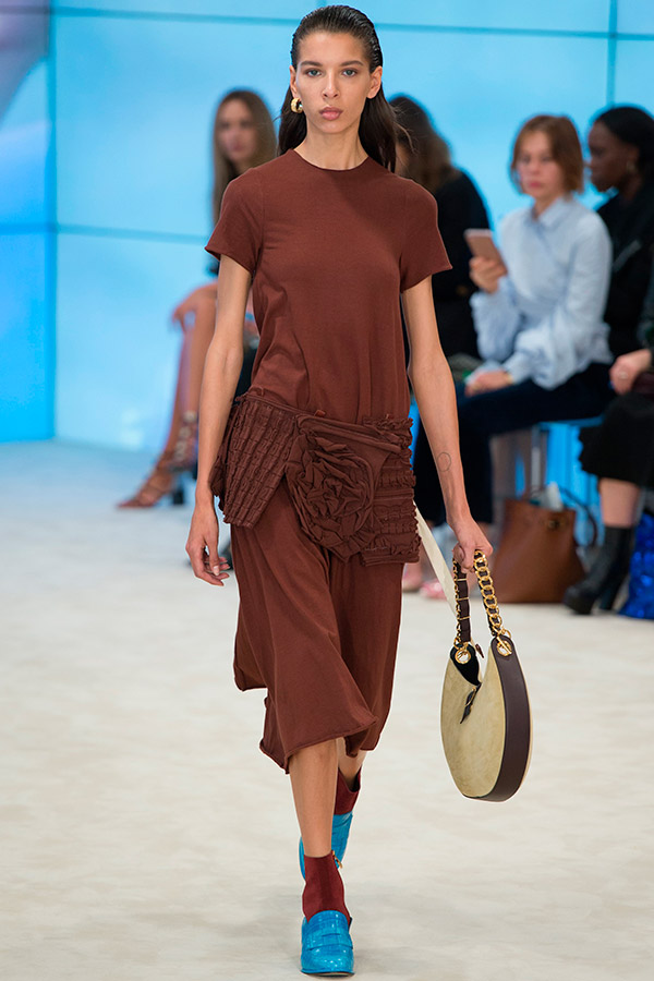 C’è il rimando al passato con le mille righe breton, i bouquet di fiori che tempestano abiti romantici, il plissè, le trasparenze, e poi i sensualissimi abiti monospalla dai bagliori metallici, i cropped-pants dalla vita altissima ultra glamour e le micro-bag vitaminiche e preziose. Ma gli evergreen sono rivisitati in chiave moderna. I designer giocano mixando i macro trend e strizzando l’occhio al futuro. Certo, orientarsi nel variegato e a volte incomprensibile mondo della moda appare sempre più complesso.