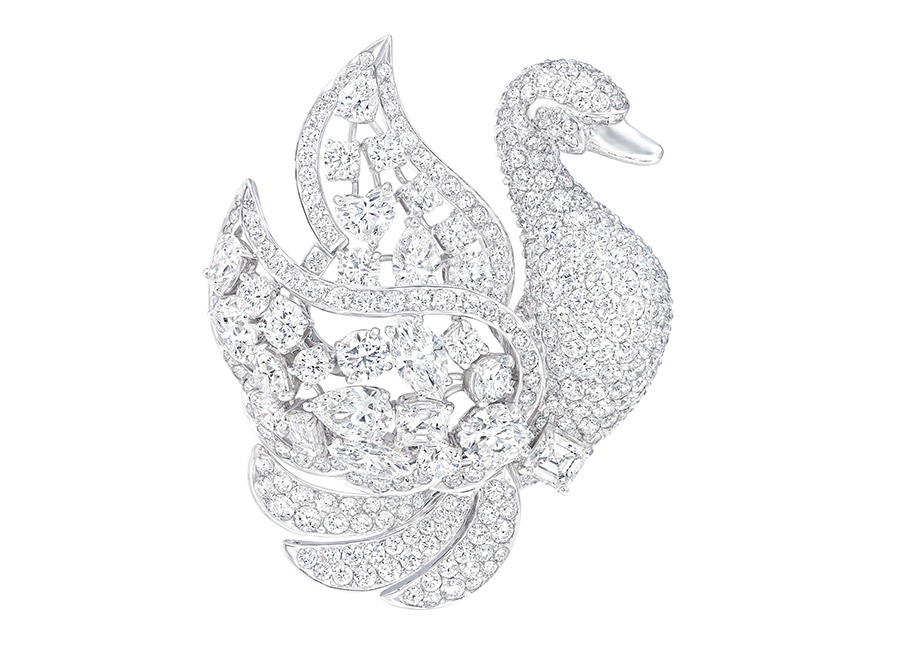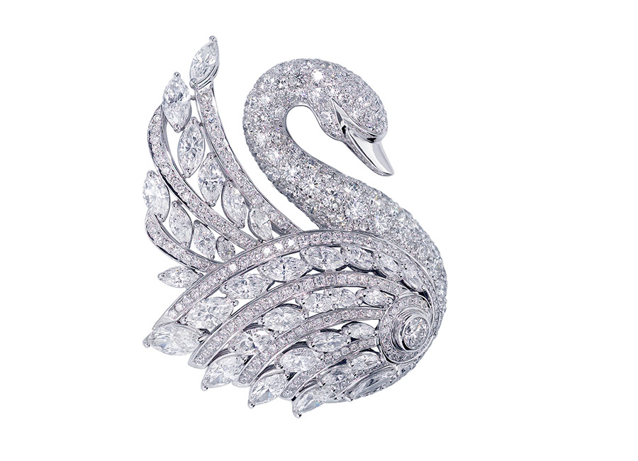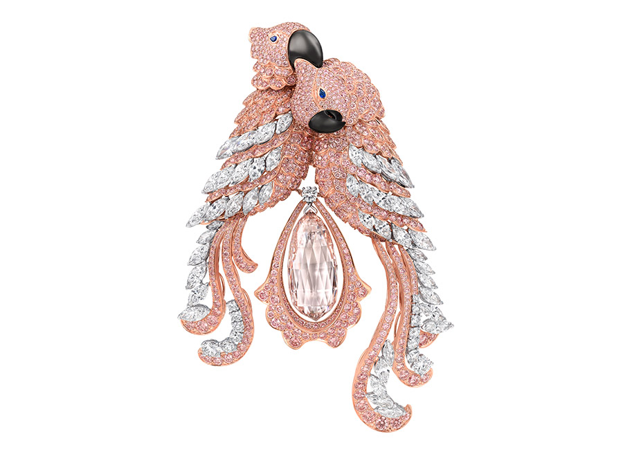 In un dolce inno all’Arcadia virgiliana, gentili uccellini, posati su rami in fiore, occupano la scena illuminata da diamanti bianchi e rosa eccezionali per taglio e purezza. Piccoli quadri idilliaci in cui la semplicità della natura ricorda quanto la spontaneità e la grazia restino avanti a tutti la prima vera eleganza.