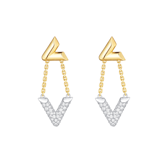 Louis Vuitton, Bracciale LV Volt in oro giallo. Orecchini LV Volt in oro giallo, oro bianco e diamanti