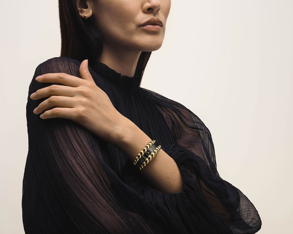 Volumi pieni che si intrecciano con linee essenziali e superfici lisce che dialogano con la texture raffinata del pavé: Tressage celebra così il savoir-faire di una Maison che sin dai primi decenni del Novecento ha saputo distinguersi nella progettazione di orologi pensati al femminile unendo sapienza tecnica e arte gioielliera. Dalle forme morbide degli anni Venti agli iconici bracciali in oro intrecciato, Cartier ha concepito segnatempo che superano la funzione pratica per diventare simboli di eleganza e personalità. E incarnano l’eredità di Jeanne Toussaint, che nel 1933 assunse la direzione creativa della Maison, la cui sensibilità continua a ispirare un modo di lavorare la materia capace di generare suggestioni tattili e giochi di luce sempre nuovi.