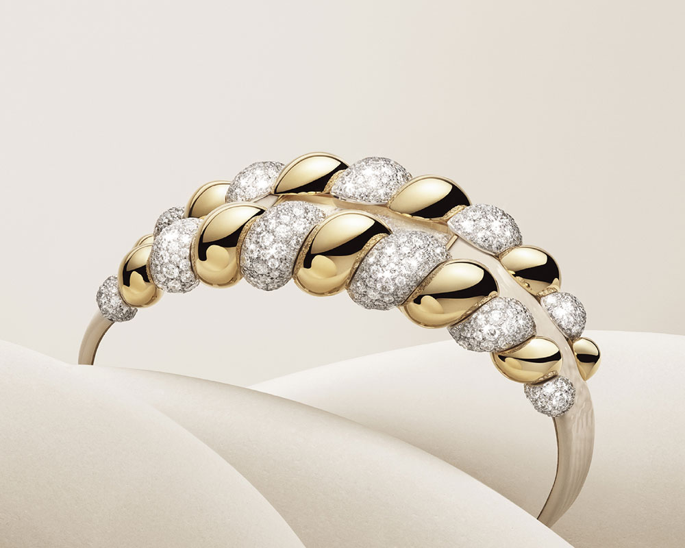 Nel Tressage in oro bianco completamente pavé di diamanti, Ref. HPI01693, l’intreccio diventa una scultura luminosa. Prezzo al pubblico: 135.000 euro.