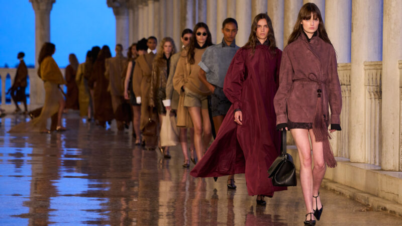La collezione di Max Mara Resort, presentata a Palazzo Ducale nella sera dell’11 giugno racconta gli splendori della città e i personaggi che sono ruotati intorno ad essa e scritto la storia del tempo.